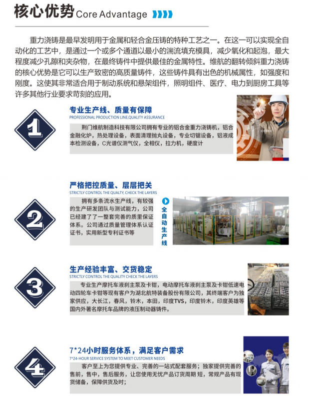 荊門維航制造科技有限公司成立于2016年,位于湖北省荊門市裝備制造產(chǎn)業(yè)園,依托航空制造工業(yè)技術,現(xiàn)有模具熔煉、澆鑄、熱處理等各類技術及產(chǎn)業(yè)員工60余人,是一家專業(yè)從事輕合金重力澆鑄各類裝備承力結(jié)構件的創(chuàng)新型企業(yè)。